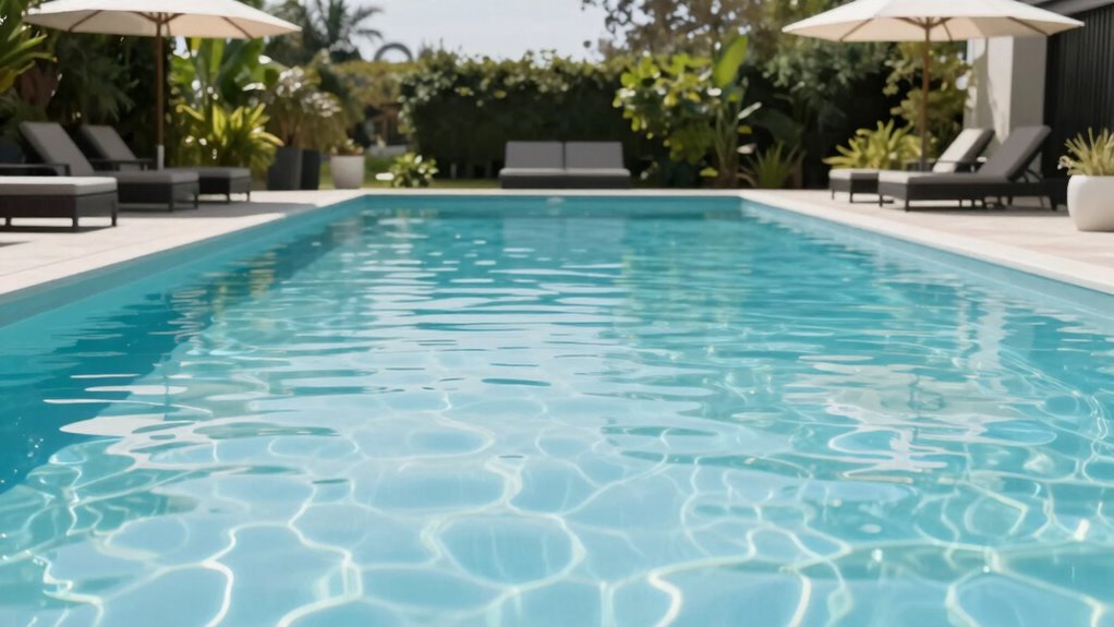 Another effective strategy involves surface coatings on the pool itself. The water’s surface acts like a mirror, reflecting both sunlight and surrounding objects. Applying surface coatings designed to reduce glare can help diminish these reflections. These coatings often contain special additives that alter how light interacts with the water, making the surface less reflective. Some coatings also help control the surface’s light-absorbing properties, resulting in a more matte finish that reduces glare during the brightest parts of the day. Additionally, you might consider applying a surface coating that improves the water’s clarity, ensuring fewer distortions and reflections. Regular maintenance of these coatings, including cleaning and reapplication as needed, is essential to maintain their effectiveness over time. Incorporating proper surface coatings along with regular upkeep can significantly extend their benefits. Moreover, understanding how light interactions influence reflections can guide you in choosing the most effective coatings. Keep in mind that surface coatings need regular maintenance to retain their effectiveness, so follow manufacturer instructions carefully.