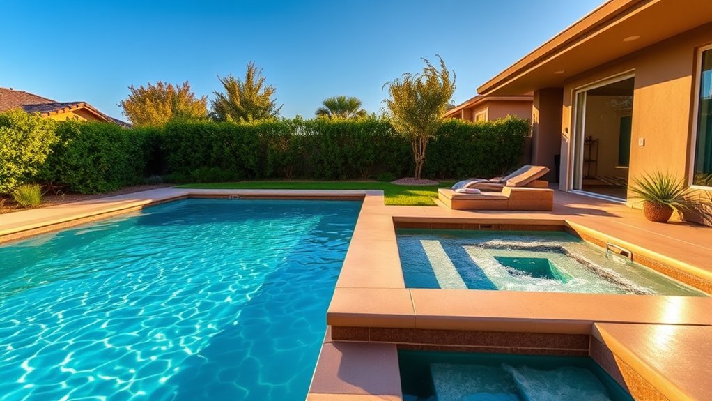 Water temperatures in pools typically range from 78°F to 82°F for comfortable swimming, but they can vary based on your settings and climate. Endless pools often have precise temperature controls, making it easy to customize for your preference. Swim spas usually feature adjustable temperature options too, but may take longer to heat or cool. Keep an eye on the thermostat to guarantee ideal comfort for your workouts or relaxation.