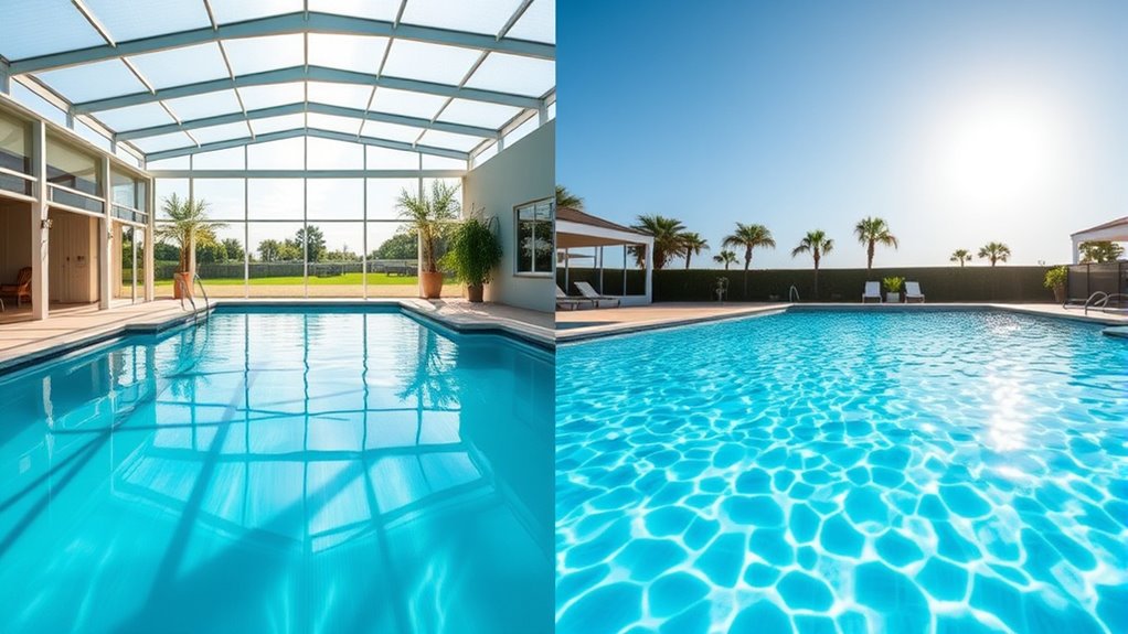 - UV exposure affects energy efficiency, with indoor pools benefiting from consistent climate control and less weather-related wear.