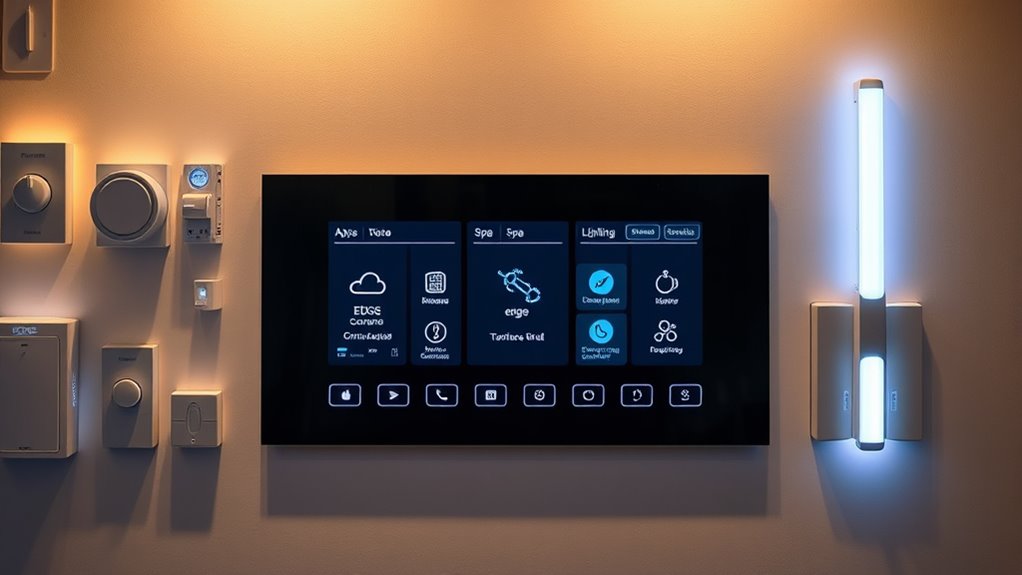 Automating edge and light settings considerably boosts security by enabling your system to adapt instantly to changing conditions. When your system detects movement or shifts in ambient light, it can automatically adjust to deter intruders or improve visibility. This responsiveness reduces vulnerabilities during unoccupied hours or unexpected events. To maximize security, consider implementing: