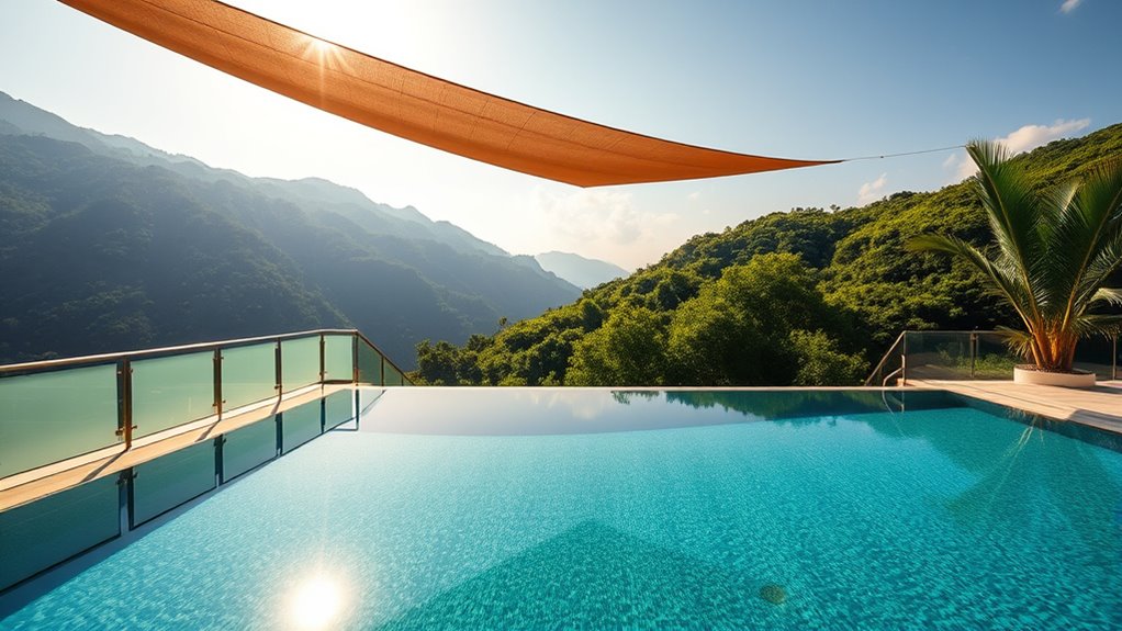 While infinity pools offer breathtaking views and a sense of limitless space, safety must never be overlooked. Balancing elegance with protection, shade strategies provide respite from the sun’s harsh rays, yet remind you that even paradise has its precautions. Embrace the beauty without sacrificing security; enjoy the allure of seamless design while staying vigilant. After all, true luxury lies not just in aesthetics, but in knowing you’ve created a space where beauty and safety coexist harmoniously.