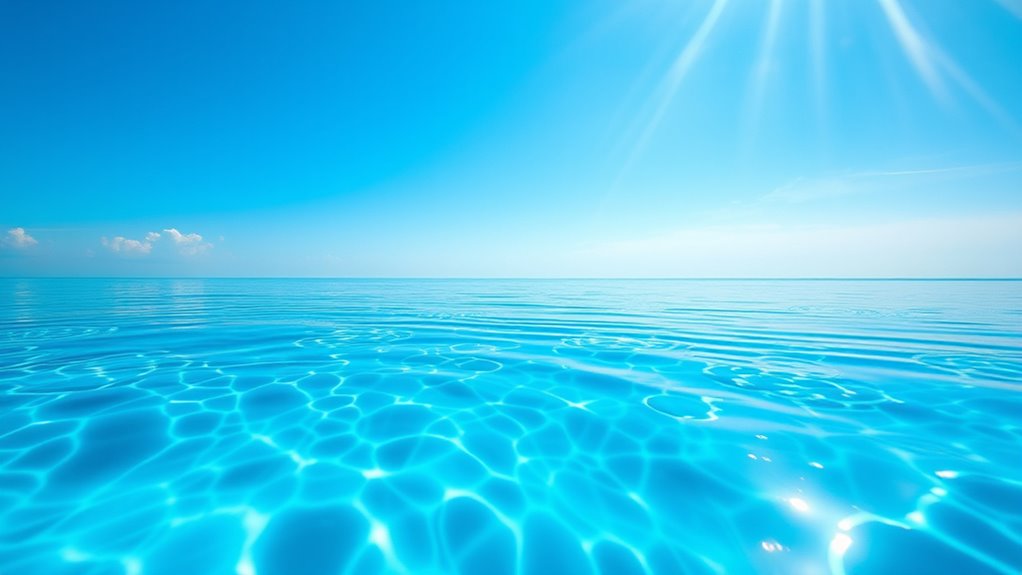 Understanding how UV refraction influences water clarity is vital. When water isn’t crystal clear, it scatters and absorbs light differently, altering the way UV rays penetrate and refract. Cloudy or murky water can trap UV rays closer to the surface, intensifying their effect and increasing skin exposure. Conversely, highly transparent water allows UV rays to penetrate deeper, spreading out their effects and potentially reducing localized exposure but increasing overall UV risk. As a swimmer, you should be aware that these optical phenomena can mislead your perception of depth and clarity, making it harder to judge safe swimming zones or to see beneath the surface.