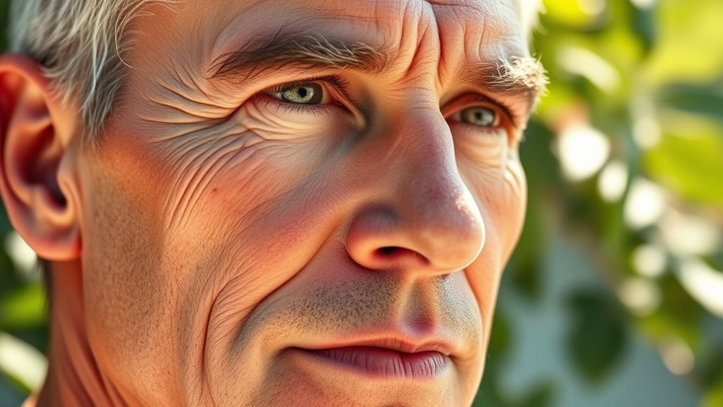 You should look for ingredients with proven ingredient efficacy in men’s skincare formulations. Ingredients like retinol, vitamin C, and hyaluronic acid help reduce wrinkles, improve skin texture, and boost hydration. These components penetrate effectively and address common aging concerns. Opt for products designed for men’s skin, which often feature stronger, more targeted formulations. Consistent use of these ingredients maximizes their benefits and keeps your skin looking youthful and healthy.