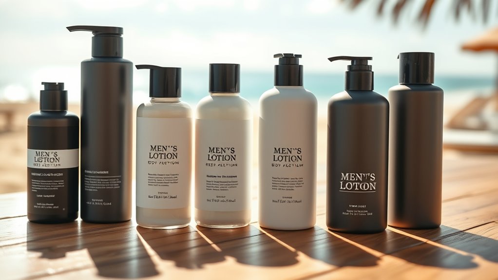 After sun exposure, using a men’s body lotion formulated for post-sun recovery helps soothe your skin, replenish lost moisture, and reduce redness. Look for products with hydrating ingredients like aloe vera, and antioxidants such as vitamin C or E to fight free radicals. Applying a lotion immediately after sunbathing can speed up healing and protect against further damage. Keep in mind that choosing the right product can make a noticeable difference—discover more about effective options ahead.
