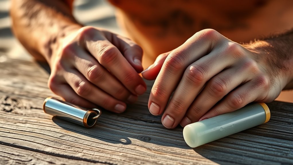 Lastly, establish a consistent post-sun routine that emphasizes gentle cleansing. Use a mild, hydrating cleanser to remove sweat, dirt, and sunscreen residues without stripping your skin’s natural oils. Avoid harsh scrubs or alcohol-based toners that can aggravate dryness or irritation. By combining hydration routines, sun protection tips, soothing tools, and gentle cleansing, you create a thorough approach that helps your skin recover faster and stay healthier longer. Taking these simple steps guarantees that your skin remains resilient, youthful, and well-protected after every sunny adventure.