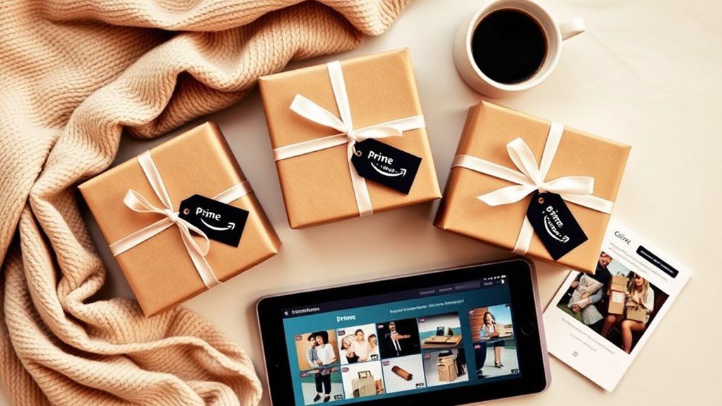 Considering delivery timing options is essential when gifting an Amazon Prime 3-month subscription, as it guarantees the recipient receives their gift at a convenient moment. Amazon offers flexible delivery choices, including same-day, one-day, and two-day shipping, depending on the product and location. During checkout, you can select preferred delivery times if the seller provides scheduled delivery services. Prime members benefit from free same-day or one-day delivery on eligible items, which can be chosen at checkout for quick delivery. Some items may have specific delivery windows, allowing you to pick a convenient date and time for the recipient. Keep in mind that delivery options can vary based on geographic region, product availability, and carrier schedules, so planning ahead guarantees timely delivery.