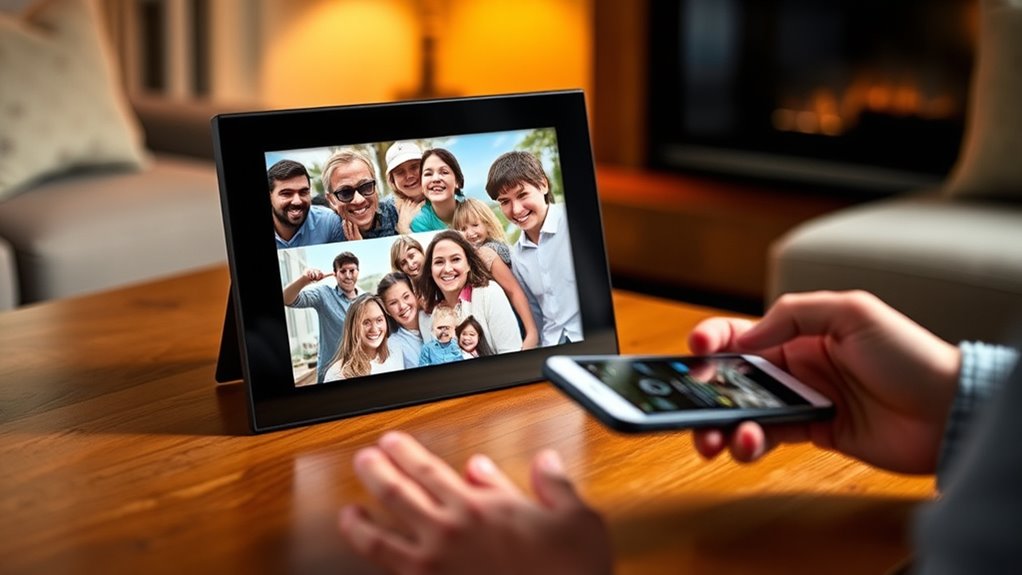 A user-friendly interface is essential for making your digital photo frame easy and enjoyable to use, especially if you’re not tech-savvy. It guarantees navigation and operation are straightforward, even for beginners. Touchscreen controls with intuitive icons make sending, organizing, and viewing photos simple and quick. Clear menu layouts and straightforward setup steps help you learn how to use the frame without frustration. Features like one-touch photo sharing and simple menu options increase accessibility for all ages. An easy-to-understand interface minimizes the learning curve, encouraging you to use the email photo sharing feature more confidently and frequently. Ultimately, a well-designed interface keeps the experience smooth and stress-free, making digital photo frames a convenient way to display and share your favorite memories.