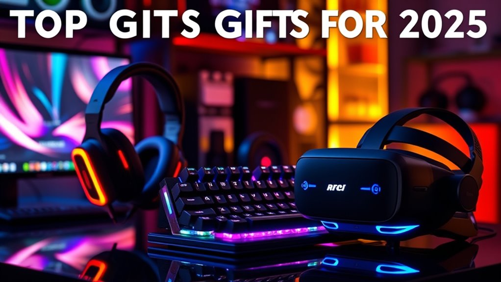 You want to personalize gaming gifts? I say, mix tech with a personal touch—think engraved controllers or custom mousepads with their favorite game art. Adding a heartfelt note or choosing items that reflect their gaming style makes it special. It’s about blending functionality with personality, turning a simple gift into a memorable keepsake. So, get creative and tailor your presents to their unique gaming journey!