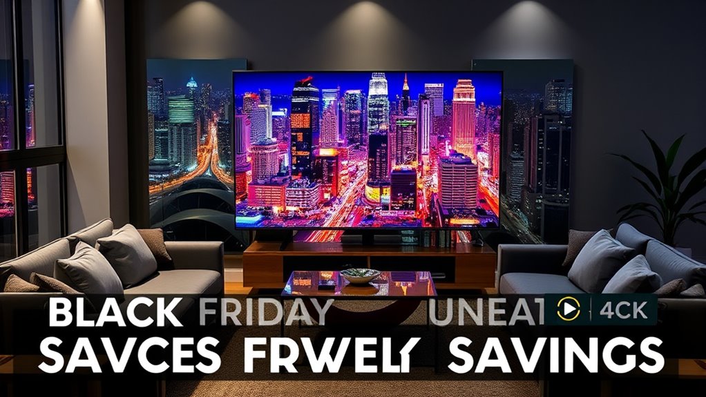 When choosing an OLED TV during Black Friday 2025, I focus on key factors like screen size, resolution, and picture quality to guarantee the best viewing experience. I also consider gaming features, smart platform options, and audio quality to find a well-rounded model. Understanding these points helps me pick the perfect deal for my needs.