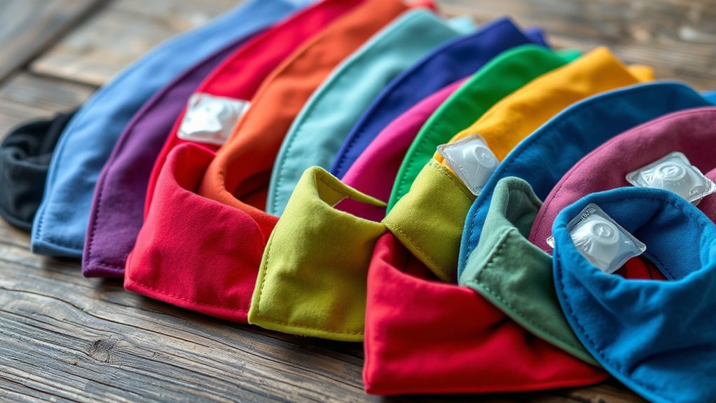 A well-fitting reusable ice neck wrap should contour seamlessly to your neck and shoulders, guaranteeing close contact for maximum therapeutic benefit. Adjustable straps or fasteners like Velcro let you customize the fit, accommodating different neck sizes and comfort preferences. Soft, skin-friendly materials such as plush or Lycra help reduce irritation and make prolonged wear more comfortable. The design should prevent slipping or bunching, so the wrap stays in place without constant readjustment. Consider the weight and flexibility of the material—lighter, pliable fabrics feel more natural and allow freedom of movement. A comfortable fit ensures the wrap remains effective and enjoyable to wear, whether you’re relaxing at home or on the go. Prioritizing fit and comfort enhances your overall experience and pain relief.