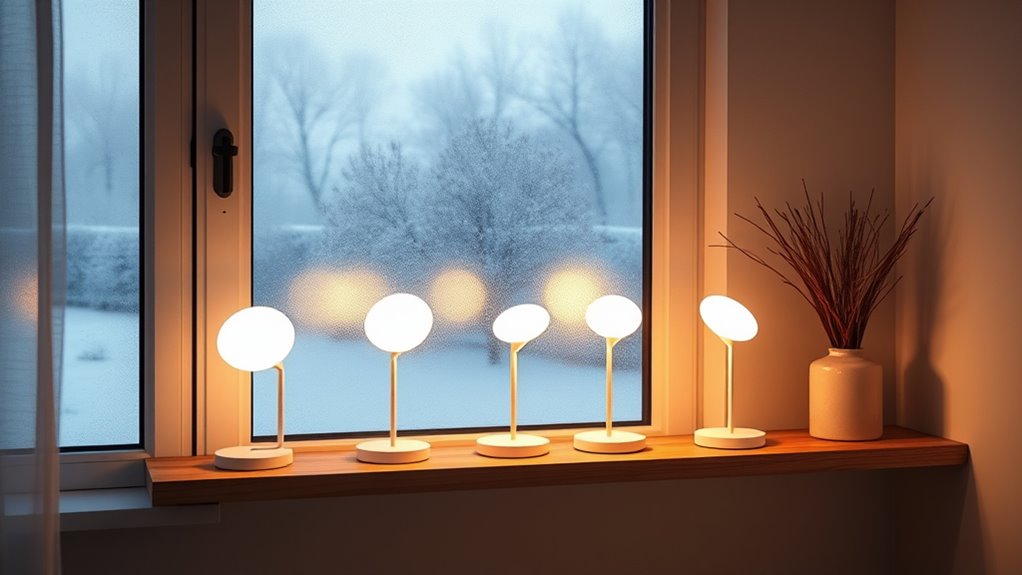 If you’re looking to lift your spirits during winter, I recommend checking out the top five sad lamps for light therapy. These include versatile options like the Verilux HappyLight Luxe, Homedics Light Therapy Lamp, lamps with remote controls, and the Circadian Optics Lumos 2.0, all offering adjustable brightness, color, and timers for personalized use. They’re designed to effectively combat winter blues safely and comfortably. Keep exploring because I’ll share what makes each of these lamps stand out for you.